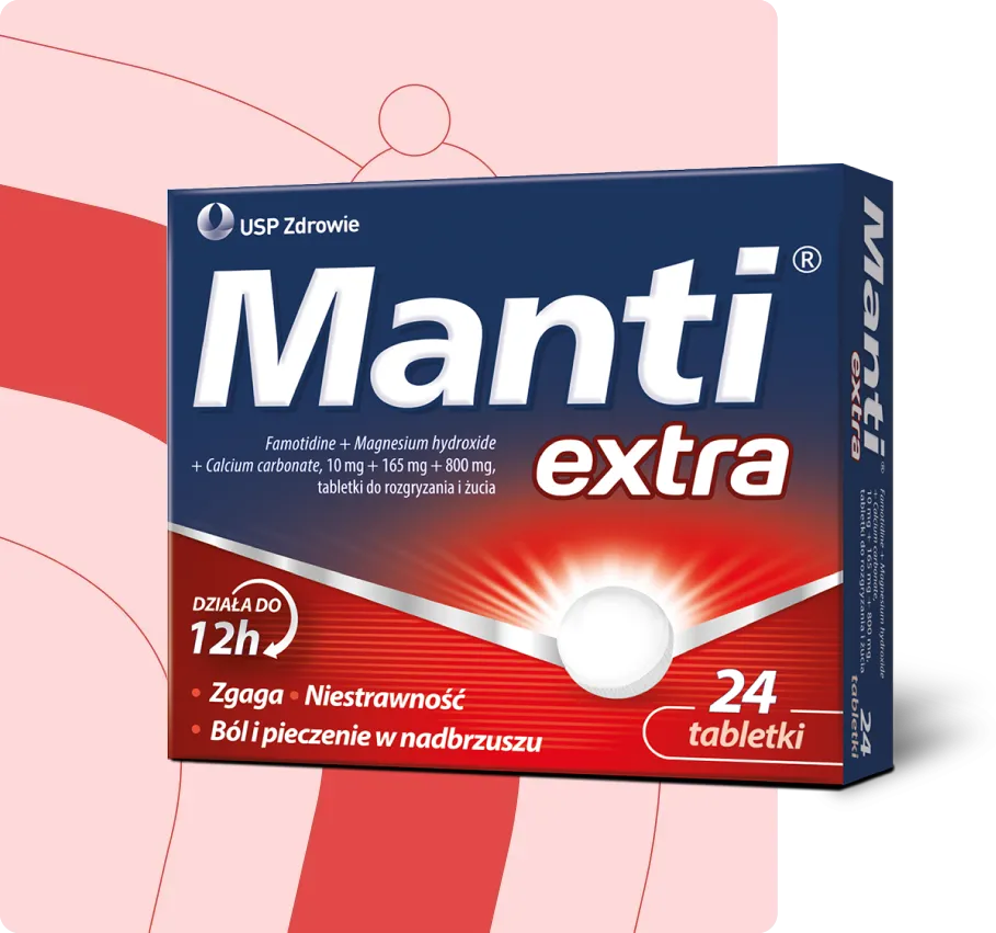 Manti Extra to szybka i silna odpowiedź na dolegliwości związane z nadkwaśnością soku żołądkowego: